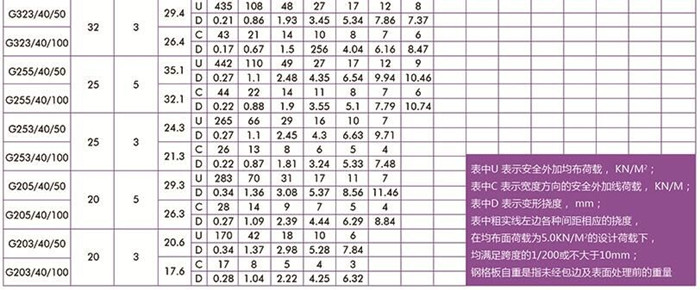 工字型扁鋼中心距為30常用格柵板規(guī)格型號(hào)及安全荷載表